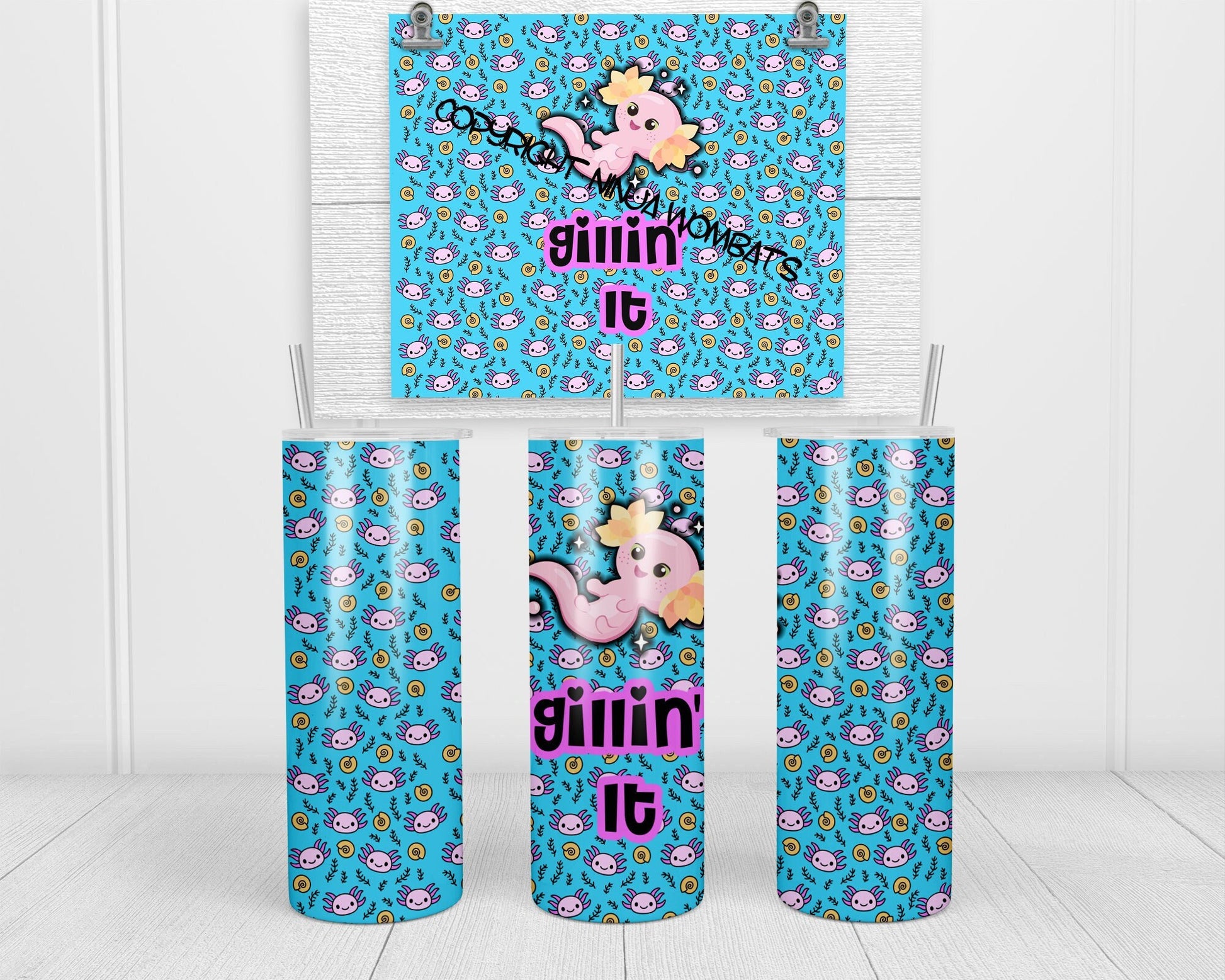 Axolotl Tumbler, Cup | 20oz Skinny Tumbler | Funny Gift for Wildlife Lover, Biologist